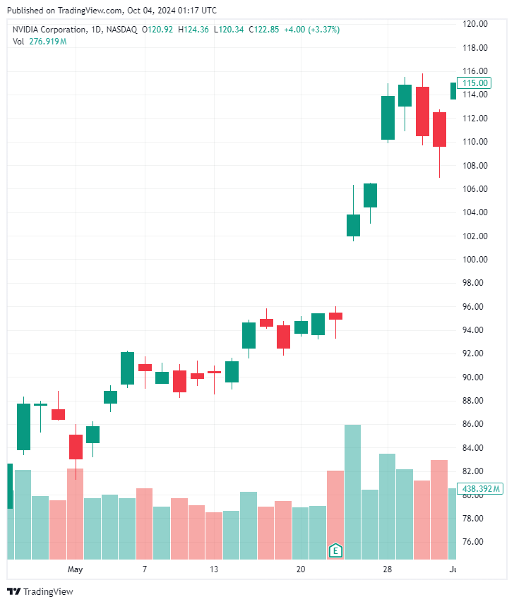May 2024: Nvidia experienced a breakout in May 2024 following a strong earnings report. The stock jumped 7.4% to reach $1,020 per share on 23 May. This surge was driven by a strong financial performance and the announcement of a 10-for-1 stock split [3].