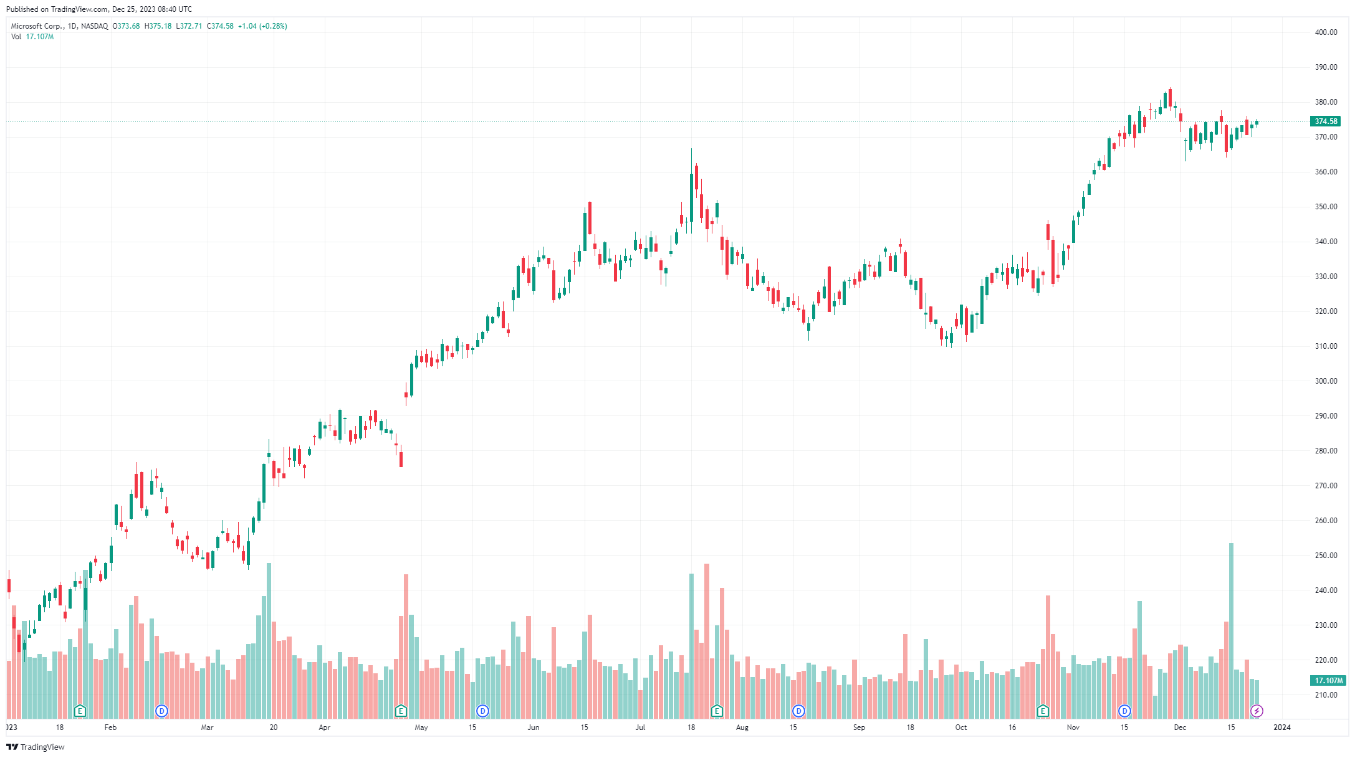 Graph 1: Microsoft Price Chart 2023 (https://www.tradingview.com/x/btjIw2zo/)