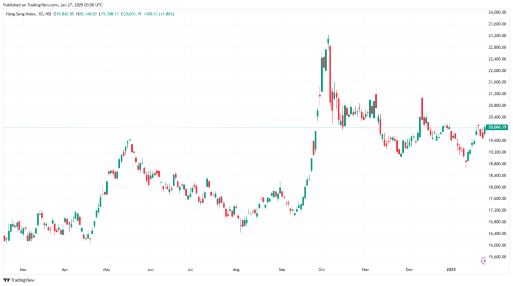 Chart 1: Hang Seng Index the past year Feb 2024 – Jan 2025 (https://www.tradingview.com/x/HPXe2RQc/ )