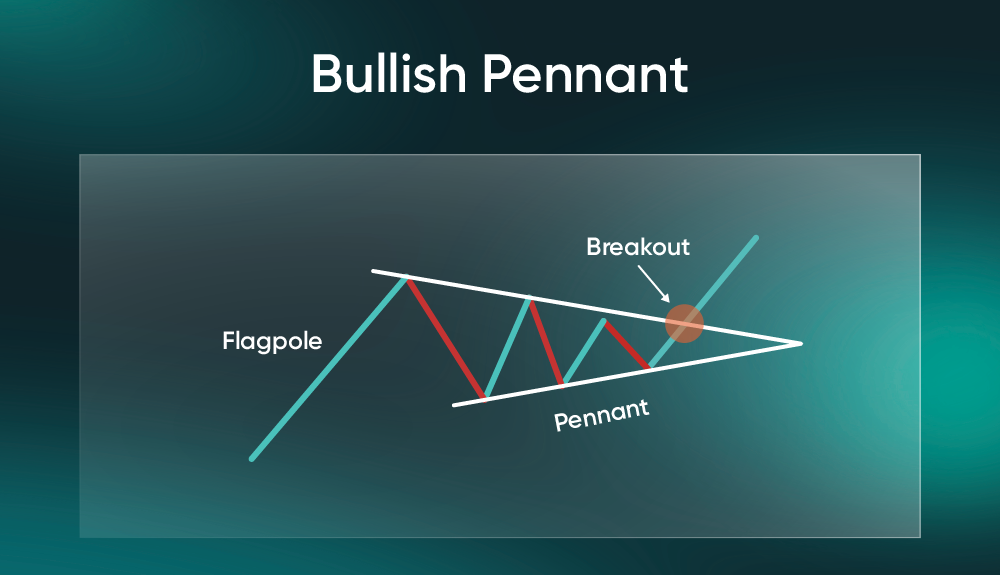 2. Triangular Bull Flag (Bullish Pennant)