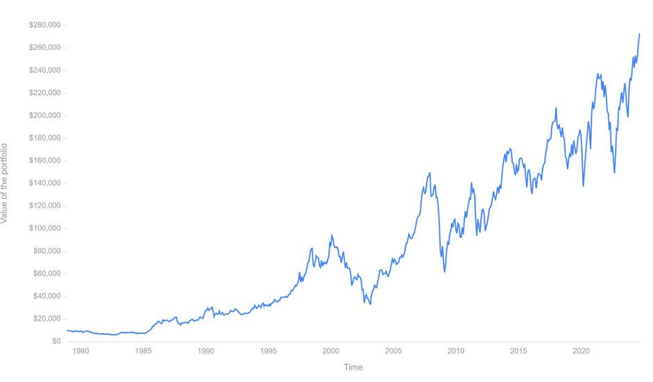 Given the long-range historical performance of the index, it can be seen that a sufficiently long investment horizon would benefit the investor with significant capital appreciation.