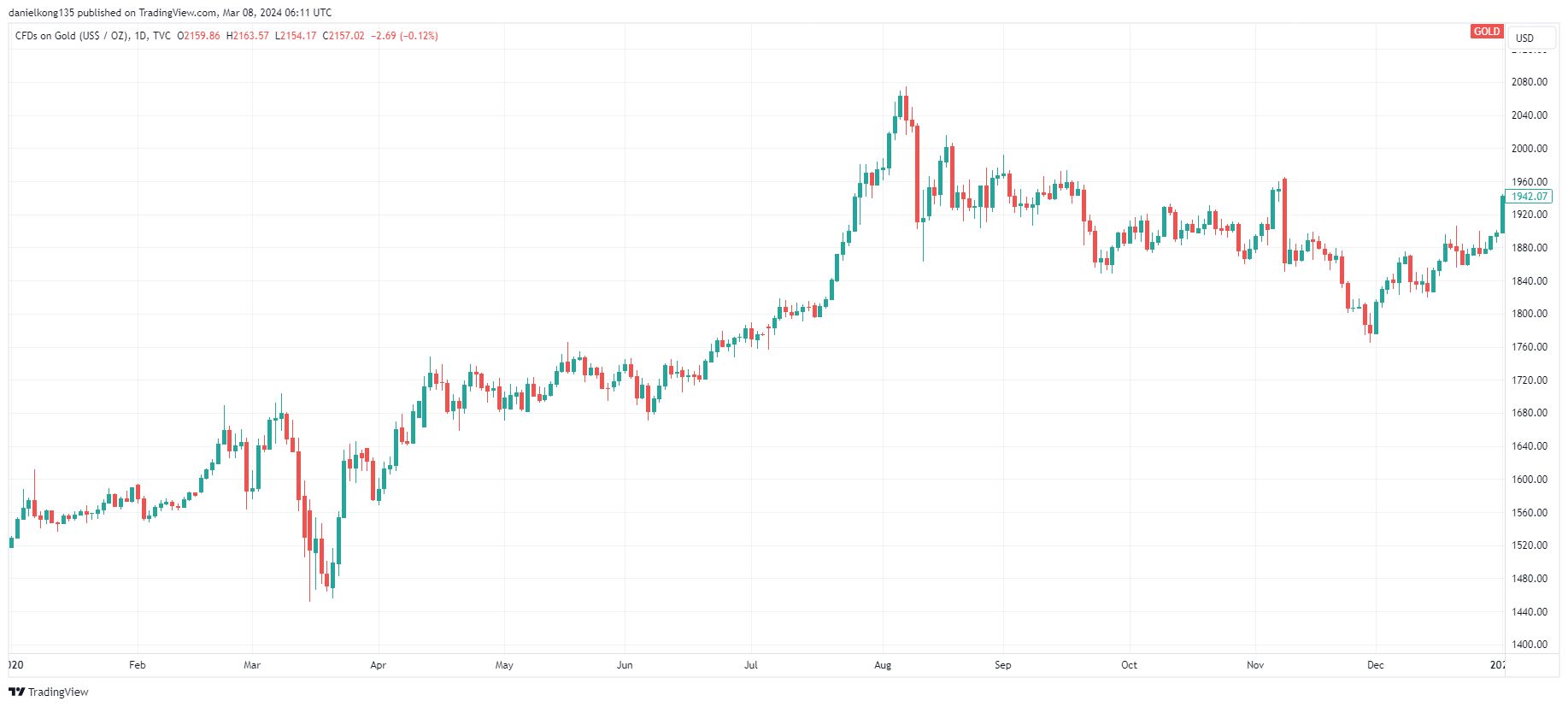 Notably, gold reached a new peak in value on 5 March 2024 driven by the continuation of geopolitical tensions in regions such as Ukraine and the Middle East, which led to increased investment in gold as central banks have continued purchasing it as a protective measure against inflation.