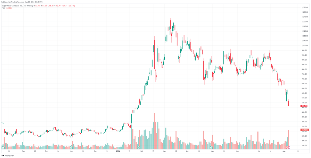 6. “Super Micro Computer stock crashes 23%, drags down AI darling Nvidia after it doesn’t preannounce earnings – Market insider”. https://markets.businessinsider.com/news/stocks/super-micro-computer-smci-stock-crash-drags-ai-darling-nvidia-earnings-2024-4. Accessed 8 August 2024.