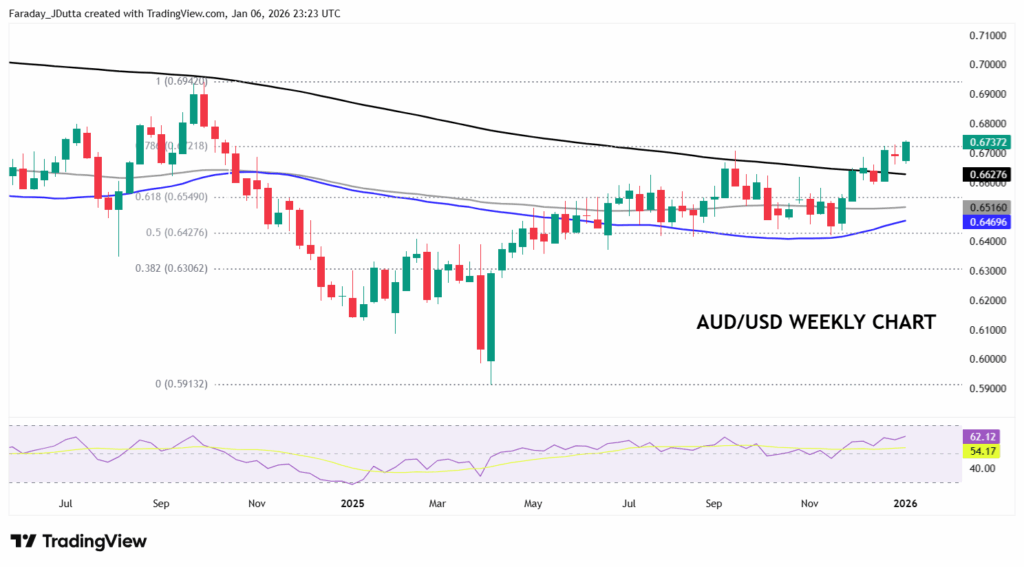AUD was the clear outperformer yesterday, buoyed by strength in metals prices. This tailwind saw AUD/USD hit a peak of 0.6741, a 15-month high last seen in October 2024. Given the support from metals and firm rate expectations, the RBA cash rate will soon be well above the Fed’s for the first time since 2018. These drivers should carry the Aussie firmly beyond the recent high in December, especially if today’s inflation data beats expectations. Given the very recent upside breakout, even a soft print may likely only be a mild setback, unless it is a false break. A minor long-term Fib level from the September 2024 high to April 2025 low is 0.6721. That long-term top sits at 0.6942.