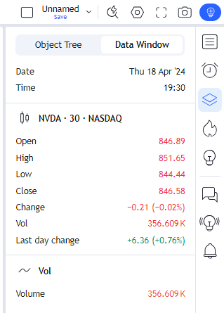 Object Tree membantu Anda mengelola semua yang terjadi pada chart Anda. Anda dapat menggabungkan semua gambar dan mengelompokkannya, mengelola properti untuk semua gambar dengan satu klik, memindahkan satu atau beberapa gambar dengan cepat di sepanjang urutan Z, menghapus gambar secara massal, dan mengaktifkan serta menonaktifkan visibilitas berbagai kelompok.