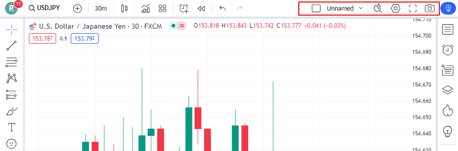 Toolbar kanan atas menampilkan alat tata letak charts yang memudahkan Anda menyimpan pengaturan chart.