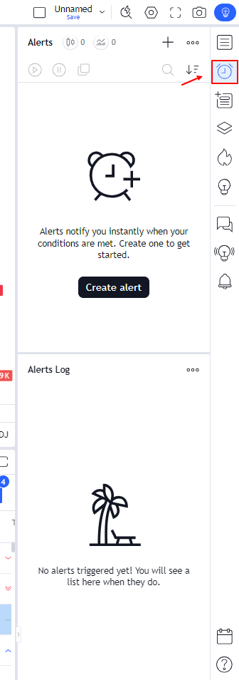 Buat dan temukan semua peringatan Anda di sini, dengan log semua peringatan Anda sebelumnya. Anda dapat mengatur peringatan untuk level harga, indikator, strategi, dan bahkan gambar.