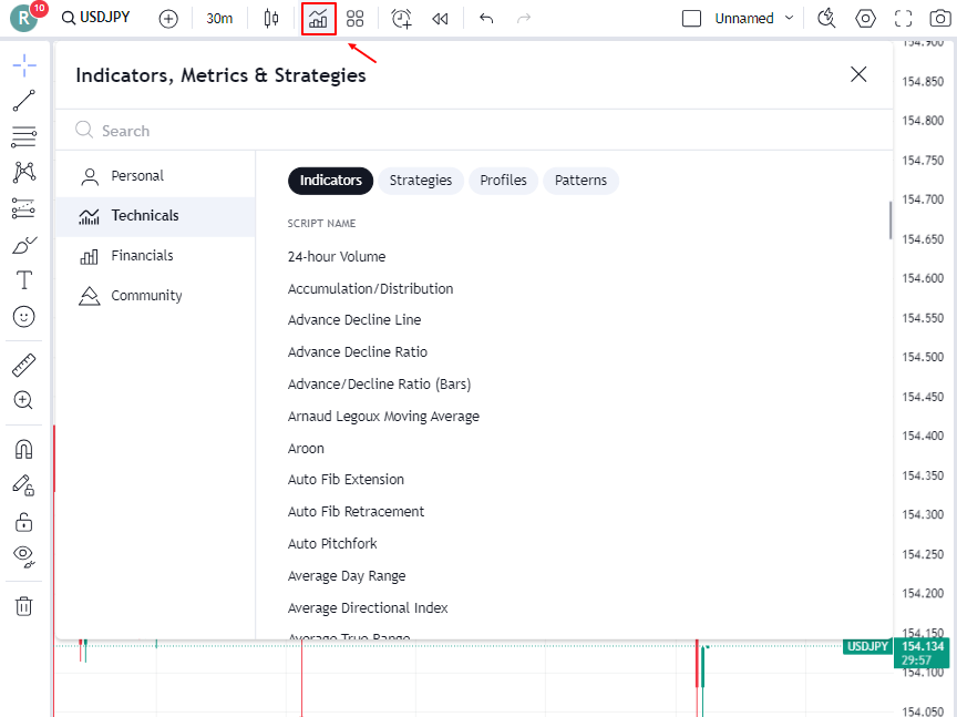 1. Luncurkan chart: Buka TradingView dan mulai dengan chart kosong dari instrumen pilihan Anda