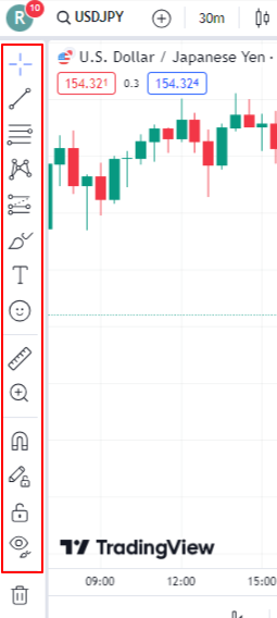 - Magnet: Menyelaraskan kursor Anda ke open/high/low/close candle terdekat untuk menggambar garis tren yang tepat
