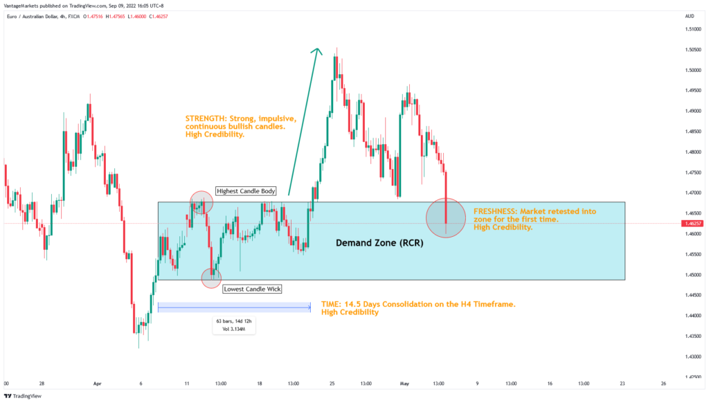 Ketika berbicara tentang kekuatan, fokusnya adalah pada kekuatan pergerakan setelah pasar bergerak menjauh dari zona konsolidasi. Semakin kuat pergerakan setelah konsolidasi, semakin kredibel zona tersebut.