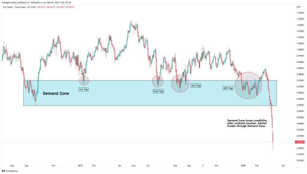 Gambar 10 – USDCHF D1 “Tidak Fresh: Beberapa Kali Masuk ke dalam Zona” (https://www.tradingview.com/x/P6bORxB7/)