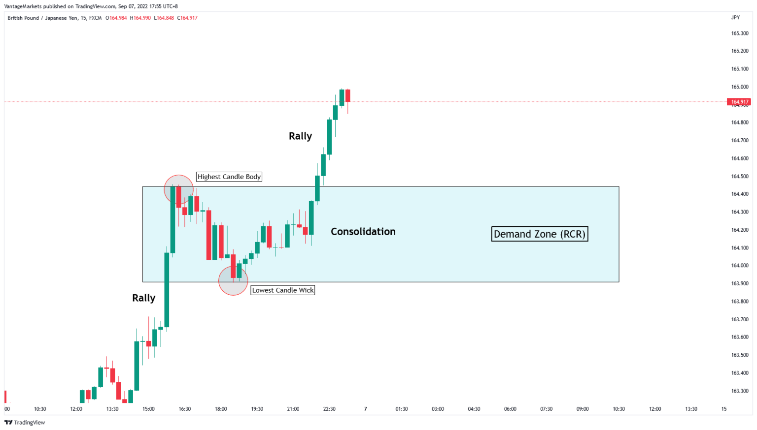 Gambar 4 – GBPJPY M15 “Cara Menggambar Zona Permintaan RCR” (https://www.tradingview.com/x/BfkOBdFZ/)