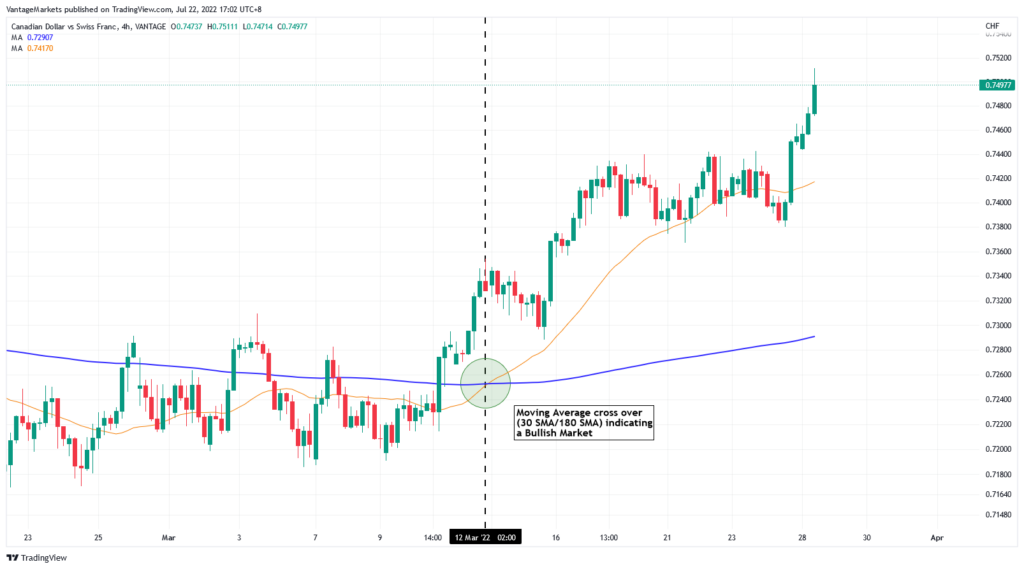 Dengan menggunakan osilator dan indikator tren, informasi yang dihasilkan memungkinkan trader melakukan trading yang lebih tegas dan percaya diri. Pada gambar 7, GBPUSD terlihat diperdagangkan di bawah rata-rata pergerakan periode 160 yang menunjukkan bearish market sementara osilator stokastik menunjukkan bahwa trading GBPUSD dalam kondisi pasar “Over Bought”, yang juga menandakan penjualan.