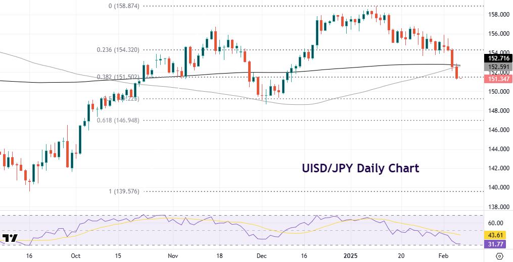 Prices hit the 200-day SMA at 152.71 and 100-day SMA at 152.59 on Wednesday. We are now just below a major Fib level (38.2%) of the September bull trend at 151.50. A soft NFP could mean we drop towards 150 and then the midpoint of that move at 149.22 which tallies with the support zone from December. Strong jobs data may see a bounce back towards the SMAs with resistance above at 154.23.
