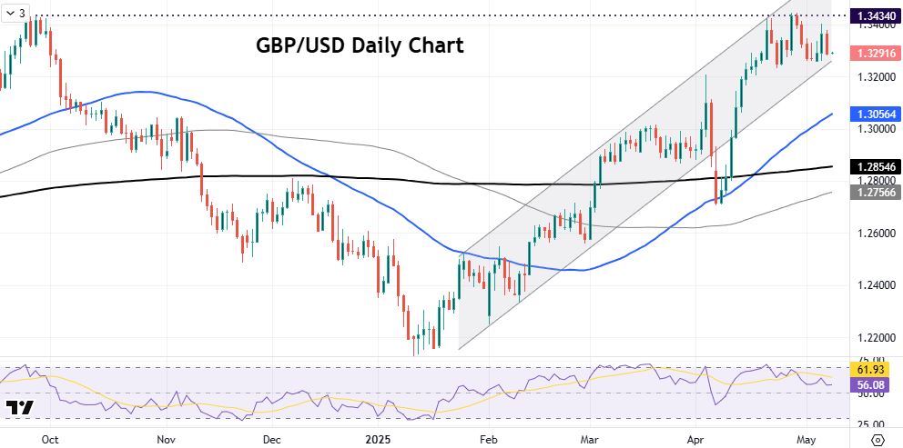Money markets price in around 92bps of BoE easing in total for 2025. That implies just under another three quarter-point moves in five meetings after tomorrow’s nailed on move. That also breaks the current cycle of quarterly cuts at some point. The chance of another move in June is around a coin flip. With so much trade uncertainty and potential downside risks to growth and inflation, will the Old Lady turn more cautious and dovish in its guidance and quarterly updated projections? Much depends on the US and trade talks, especially if the UK economy doesn’t roll over and domestic inflation stays sticky.