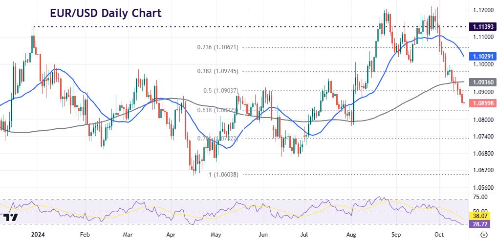 FX: USD climbed higher for a sixth straight day to an 11-week high. A win streak that long hasn’t been seen since August 2023. Prices have pushed above the 50% retracement of the April to September downtrend at 103.33. A Trump election victory is starting to get priced in. He doubled down on his plans for high tariffs in a TV interview. Tax cuts and looser financial regulations are all viewed as dollar positive.