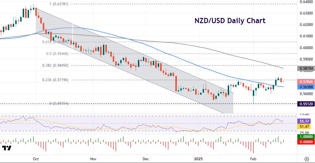 AUD printed a doji candle as prices consolidated just below the recent top at 0.6373. As expected, the RBA cut rates by 25bps for the first time in four years, after holding rates at 4.35% since November 2023. But it was accompanied by hawkish remarks by Governor Bullock, both in the statement and in the press conference. She seemed to focus on pushing back against the dovish repricing in money markets, repeating that the focus remains on inflation risk. USD/CAD traded in a narrow range holding around its recent lows just below 1.42 after stronger than expected inflation data.