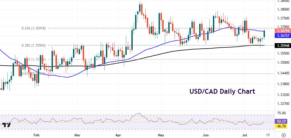 FX: USD started the week consolidating near strong support around 104.10, but below the 200-day SMA at 104.43. The Trump attempted assassination has not had a big impact on markets, but it has lifted his odds of becoming President again. The 2.0 version is expected to be inflationary with tariffs, tax cuts and immigration controls. That would hit the bond market and potentially offer support to the dollar. Fed Chair Powell indicated a rate cut is coming with increased confidence with recent inflation readings and falling closer to target.