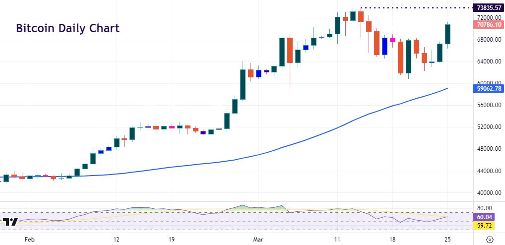 Chart of the Day – Bitcoin breaks $70,000, eyes record highs