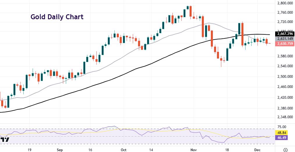 An NFP print above 240k, with the unemployment rate unchanged at 4.1%, will see the odds of a December rate reduction reined in with markets questioning if the Fed should simply sit on their hands. Rate cuts would likely get reined hurting gold. Support is $2605 and then around $2536. It would take a very weak NFP, say sub-100k with a higher jobless rate to reverse the US equity bull move. Investors might question the underlying health of the US economy which could help gold as a haven. Resistance sits at $2667 and then $2721.