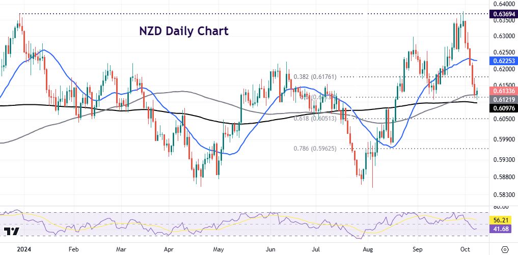 Going forward, inflation is now well-positioned to edge down within the 1-3% target band in coming prints. But, more importantly, the growth backdrop remains sluggish. With markets convinced that the bank will cut interest rates by 50bps, and by another 50 in November, it means that the risks for the kiwi could be tilted to the upside. If officials do signal more aggressive easing, this will confirm market expectations. That means any less dovish chatter could see the kiwi not depreciate and steady. If anything holds back the RBNZ, then it could be to wait to see Q3 CPI figures that arrive the following week, although there is a lot of ground to cover until the next decision toward the end of November.