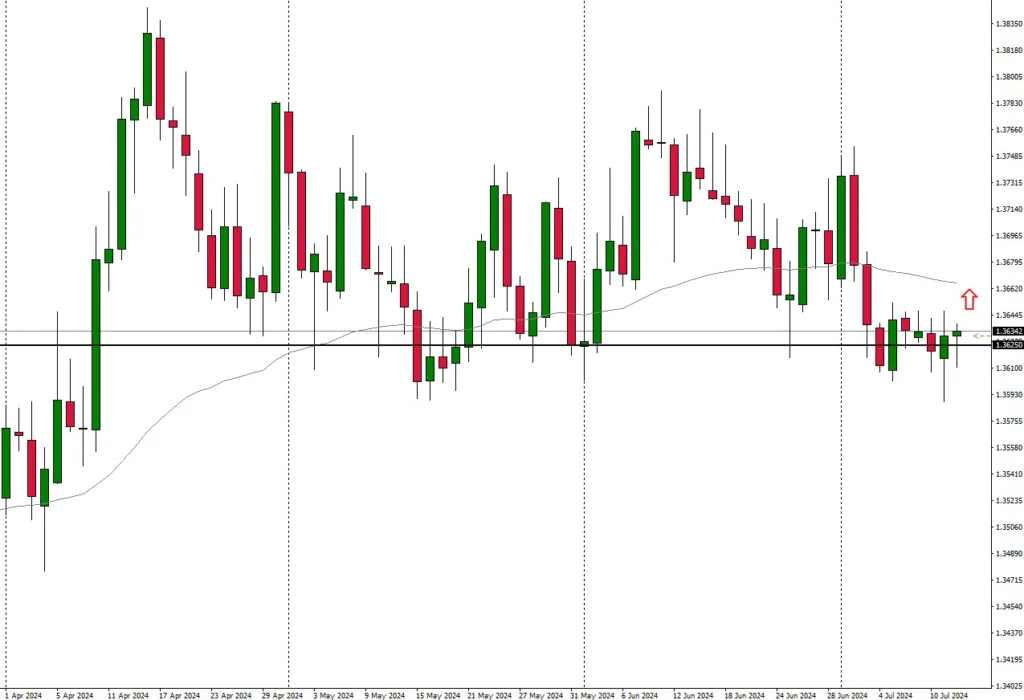 This is where the 50-moving average kicks in. This should indicate an important resistance area. If it is broken, further momentum towards 1.1050 could quickly materialize. The key interest rate decision will take place on Thursday, 18 July at 14:15 CET.