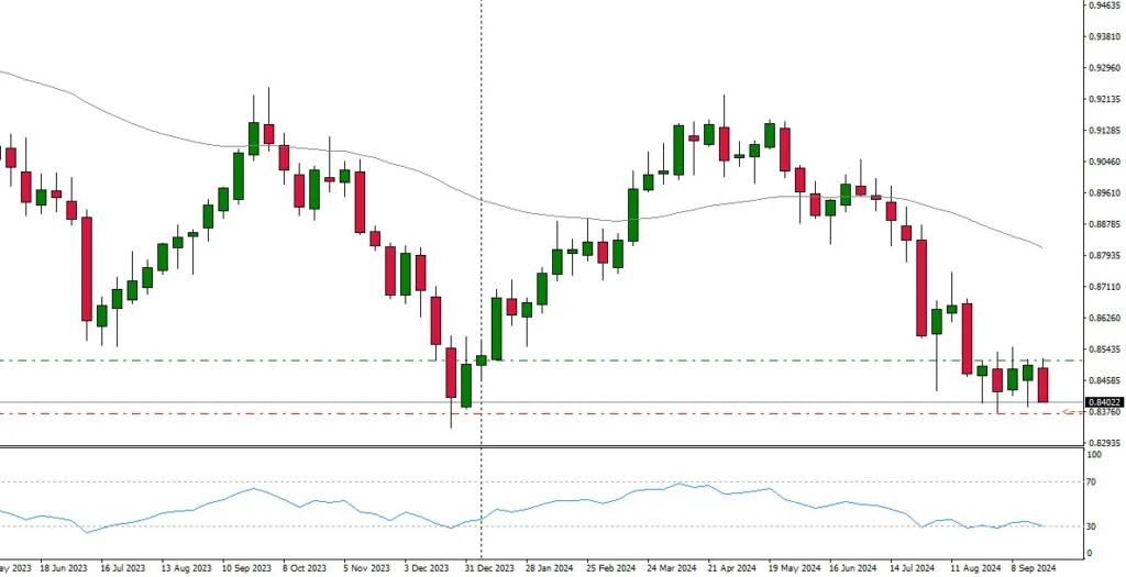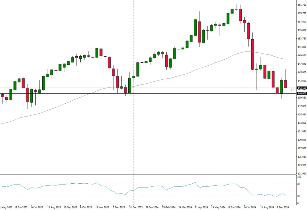 The market is trading below the 50-moving average, based on the weekly chart. A break of the support at 140.80 could quickly indicate further downside potential. The figure will be published on 04 October at 14:30 CET.