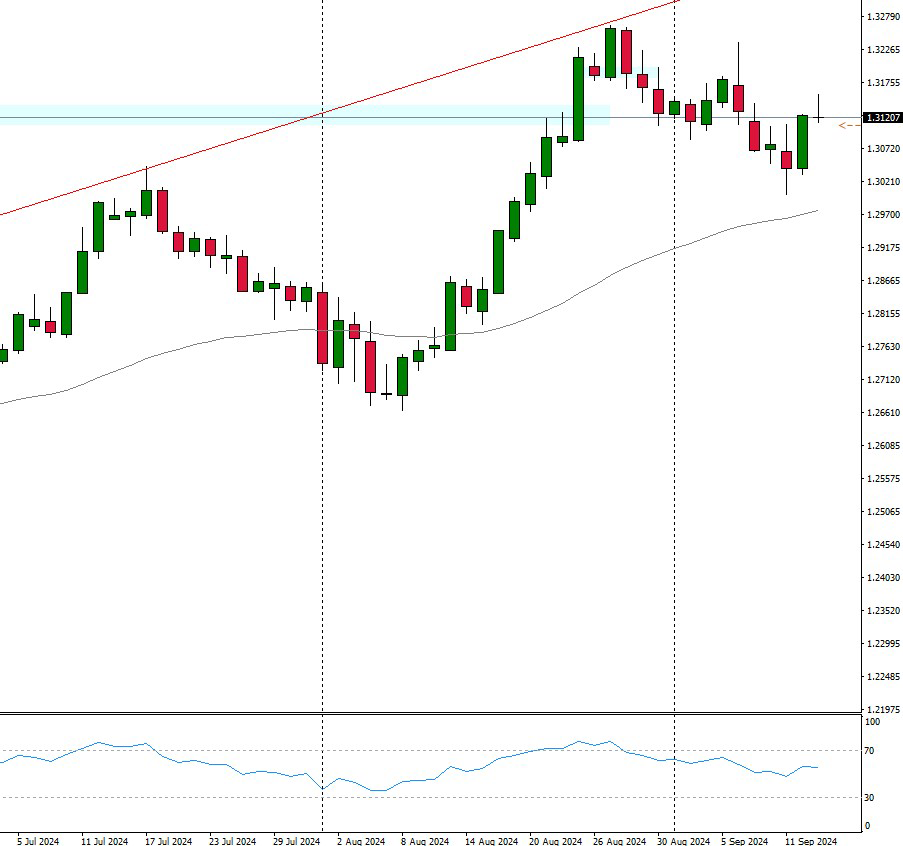 On the GBPUSD daily chart, we can observe a fresh upward trend. If the event turns out as expected, the market might continue higher. The decision will take place on Thursday, 19 September at 13:00 CET.