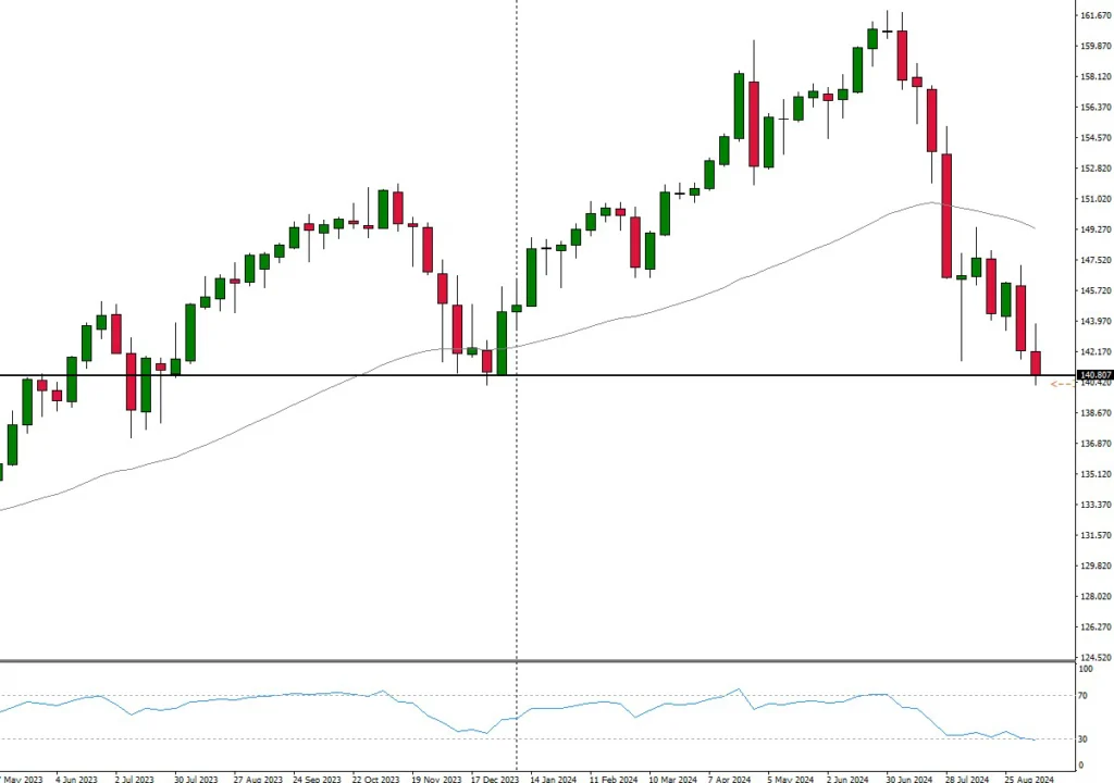However, the USDJPY price is currently trading directly on a support zone at 140.80 on the weekly chart. Only if this is broken could there be further downside potential. The interest rate decision will take place on Friday, 20 September.