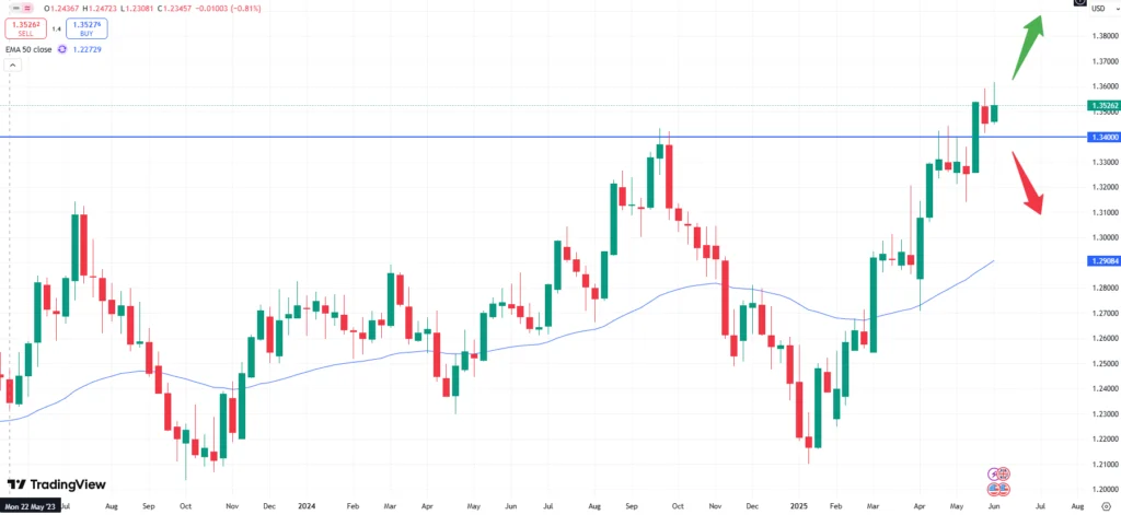 The weekly chart of the GBPUSD currency pair reveals that the market could be ripe for a correction to lower levels. Since the price is currently trading in slight overbought territory a push to the downside might occur, initiated by a stronger Dollar. The Federal Reserve keeps their focus on the hard data and without a negative economic impact a rate cut might not be in sight, which is positive for the Greenback. A slight rise in consumer prices could hence be of support after the long streak of weaker prices. The data will be released on Wednesday, the 11th of June at 14:30 CET.