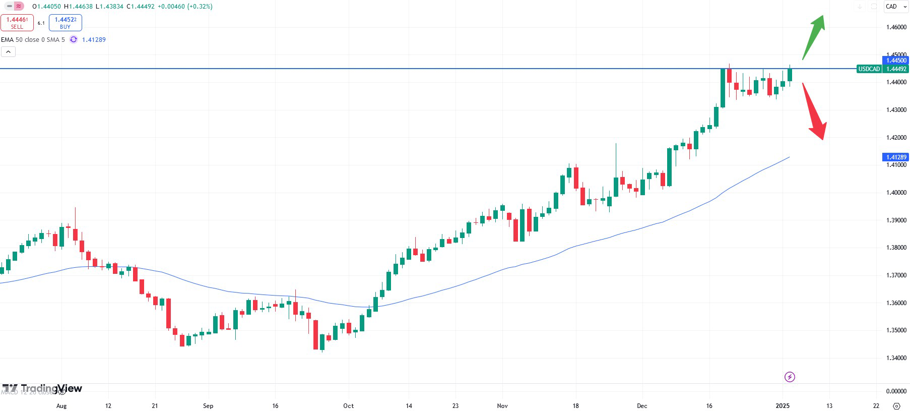 The daily chart shows, that a breakout to the upside could follow given the recent trend and the continued weakness of the Loonie. On the other hand, a better-than-expected number might cause the pair to fall and retest the support zone at the 50- moving average area. The figure will be released on Friday January 10 at 14:30 CET.
