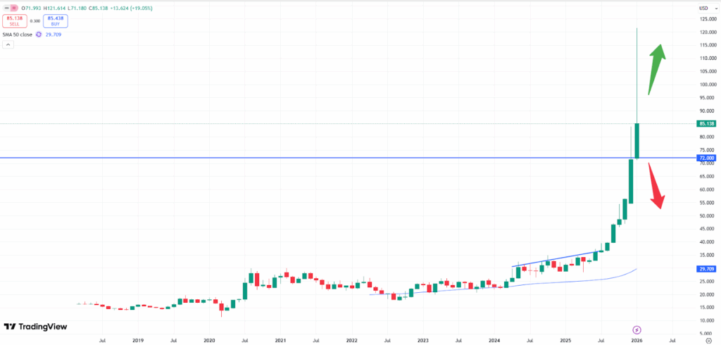 XAGUSD monthly chart