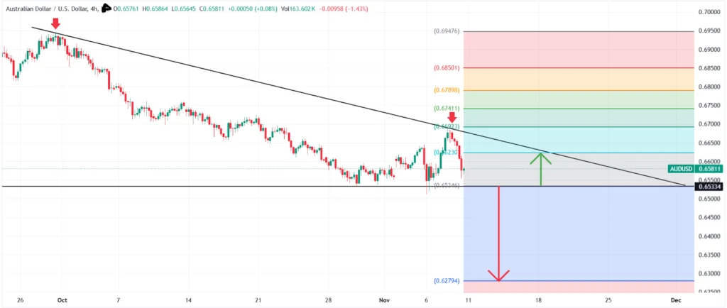 Last week, AUDUSD was rejected at the 4-hour downtrend line near 0.6690, sliding to around 0.6580. Even the rate cut in the US did not harm the Dollar and instead caused him to rise further. A break below the 0.6540 support could open the path toward 0.6280. However, if the breakout fails, a rebound to 0.6620 is likely. Next moves hinge on the upcoming AUD unemployment rate and US CPI release.