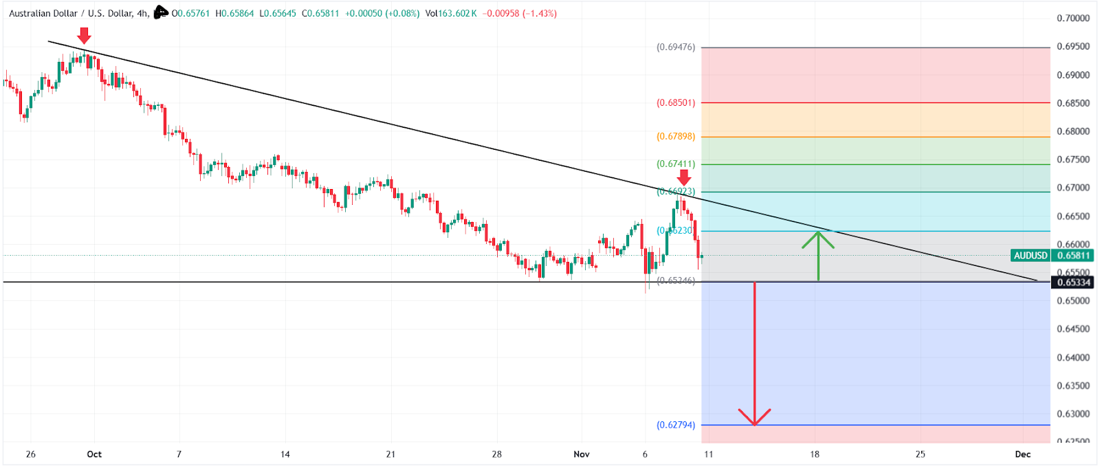 Last week, AUDUSD was rejected at the 4-hour downtrend line near 0.6690, sliding to around 0.6580. Even the rate cut in the US did not harm the Dollar and instead caused him to rise further. A break below the 0.6540 support could open the path toward 0.6280. However, if the breakout fails, a rebound to 0.6620 is likely. Next moves hinge on the upcoming AUD unemployment rate and US CPI release.