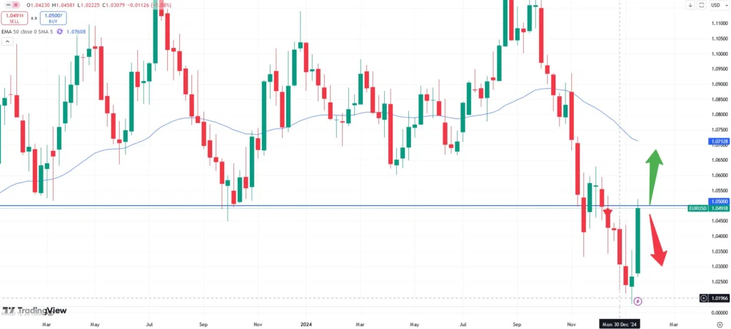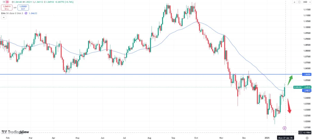 That aside if we focus on the daily chart above the EURUSD currency pair seems to continue its upward trend. Not only has the market broken the 50- moving average at the 1.0460 zone but also shows strong momentum as per the recent candlesticks. This might hence lead to further potential. The currency pair might be on track towards the next resistance zone at 1,0650. The interest rate decision from the US will be held on the 29rd January, 2025, at 20:00 CET.
